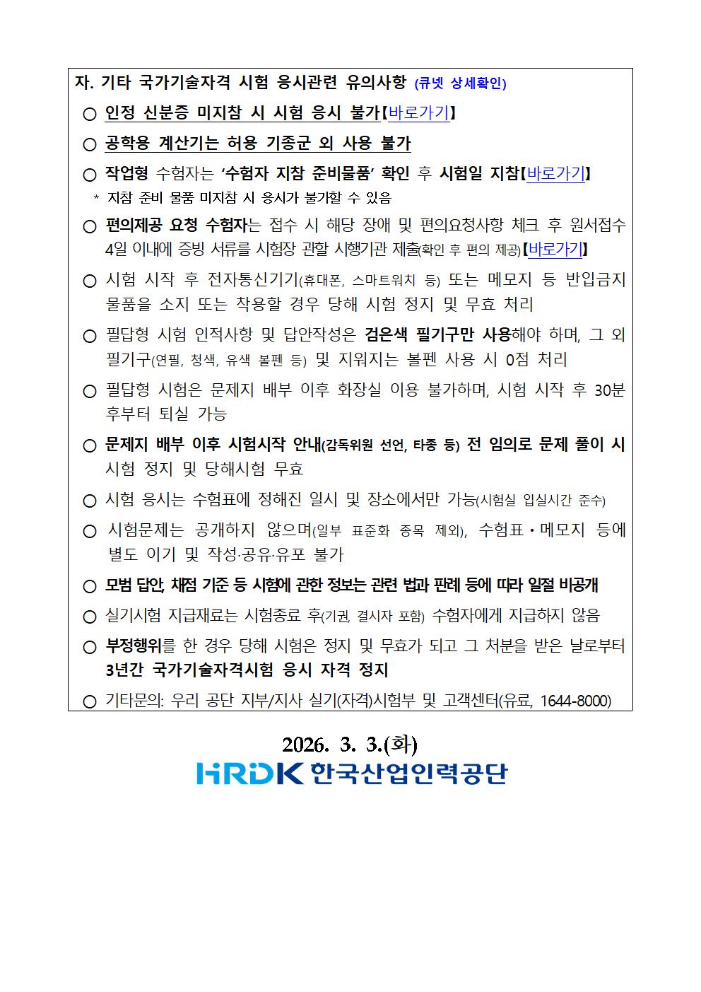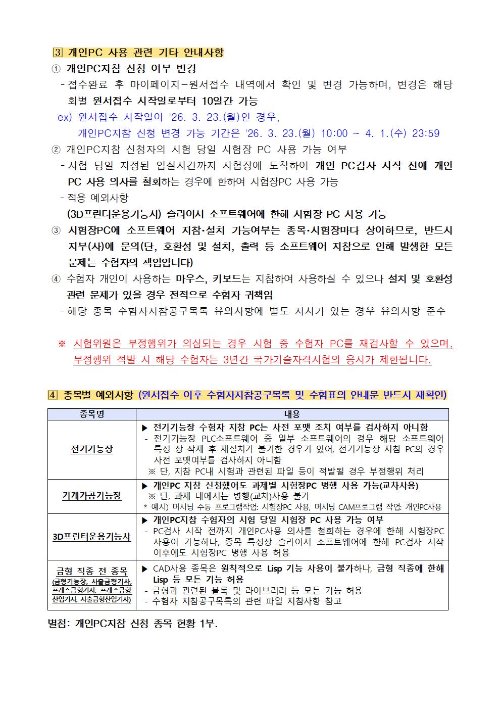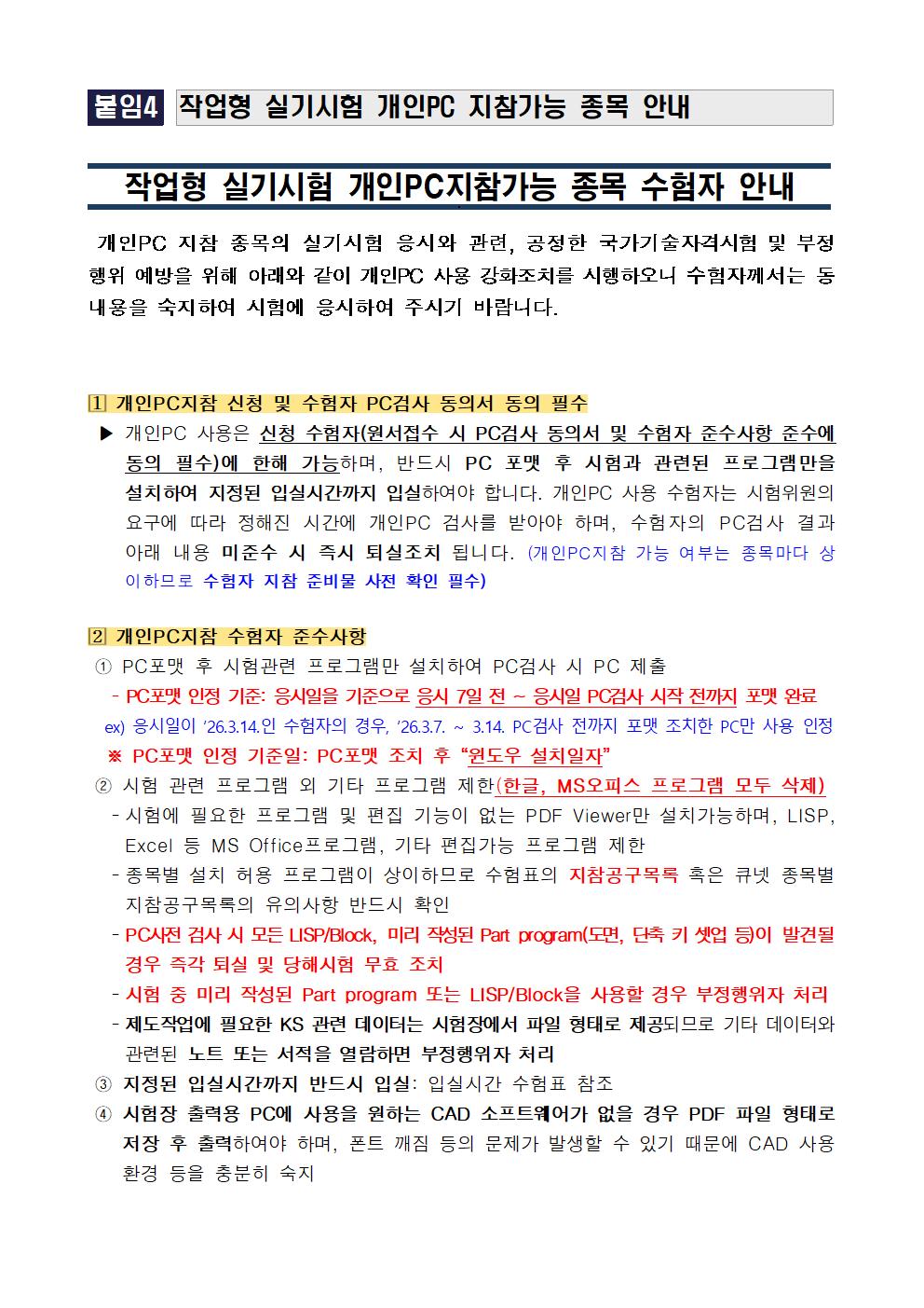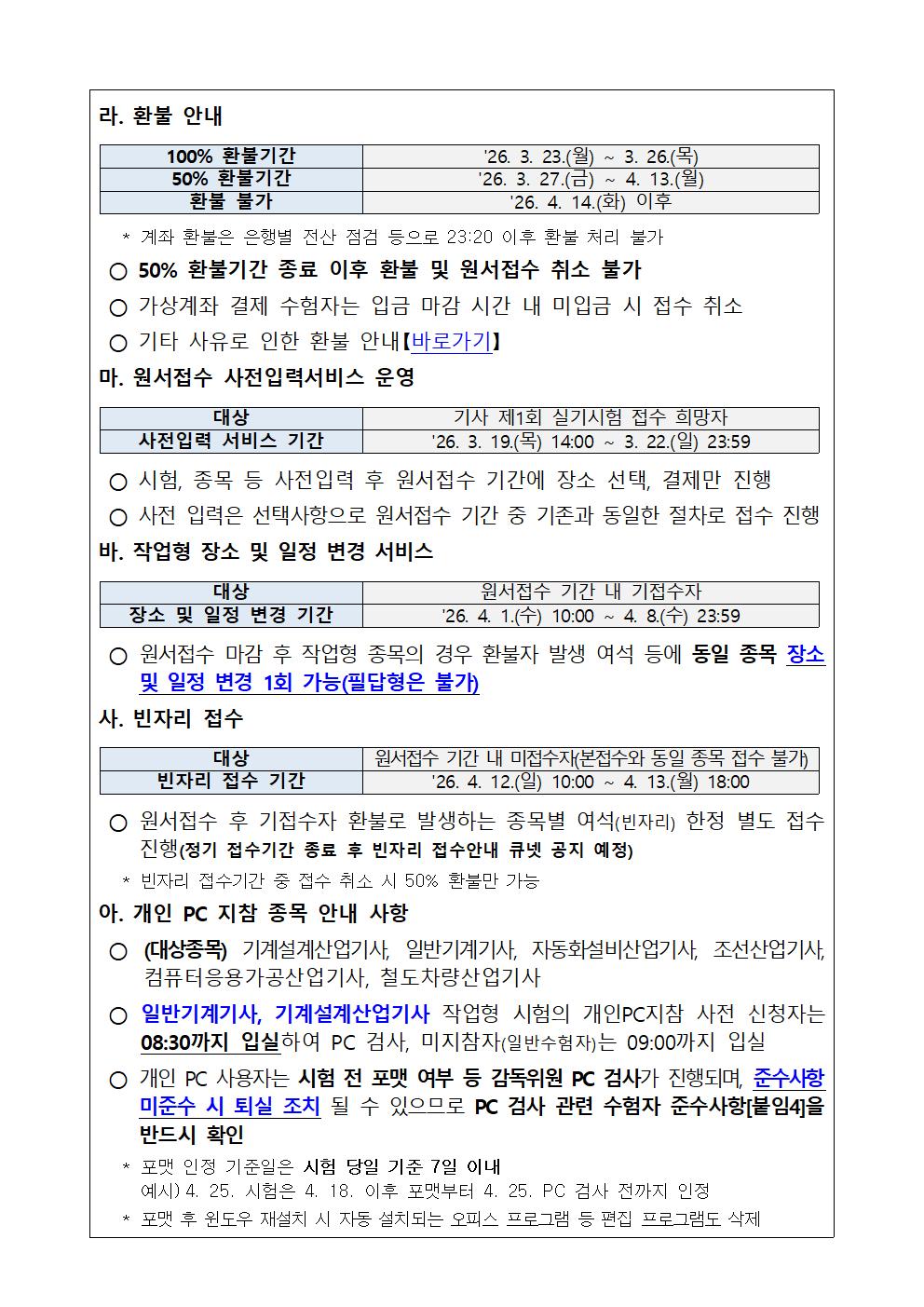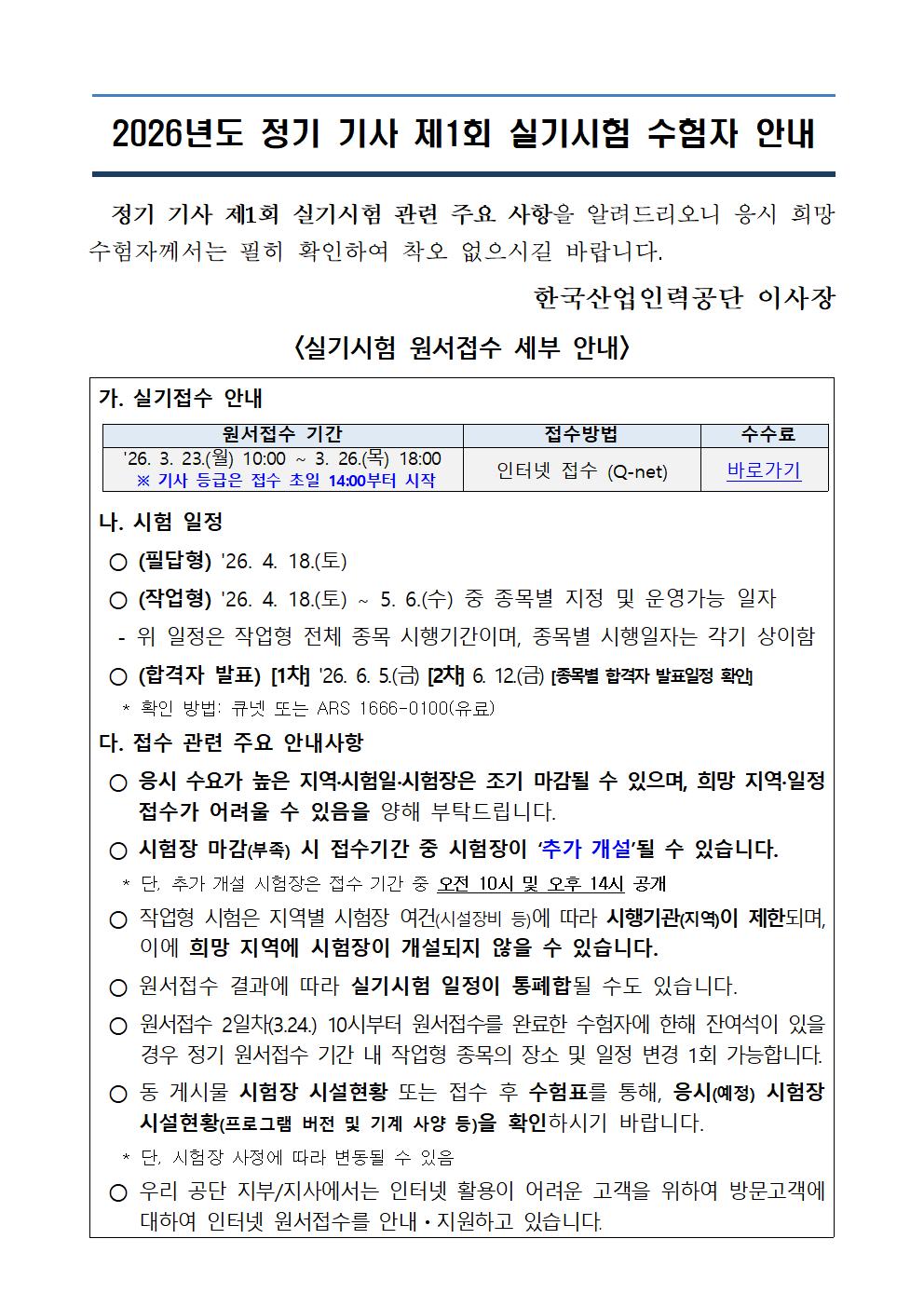 2026년 정기 기사 제1회 실기시험 원서접수 안내